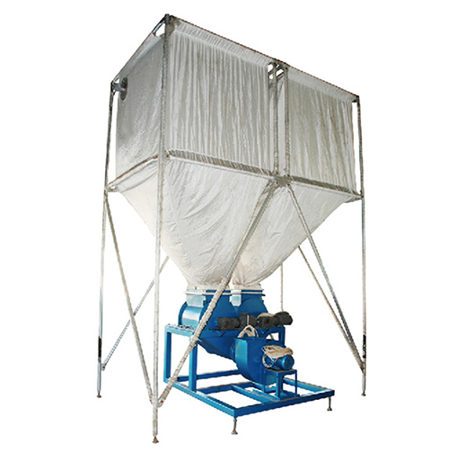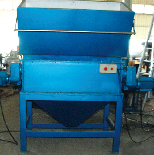廢泡沫或舊泡沫通過(guò)碾碎機(jī)把泡沫一塊塊或一粒粒掏下來(lái),然后送到磨圓機(jī)把碾碎后的泡沫塊或泡沫顆粒搓成一粒一粒圓形顆粒,此過(guò)程產(chǎn)生的顆粒狀原料和粉塵被送到粉粒分離機(jī),通過(guò)帶螺桿的分離裝置在真空狀態(tài)下實(shí)現(xiàn)粉末顆粒的分離,分離后的粉末被傳送至過(guò)濾站收集起來(lái),而可利用的顆粒被送到比例混合機(jī)上的料籠和新鮮原料一起通過(guò)比例混合機(jī)根據(jù)制品的需求按比例混合,混合后的原料被送至原料籠等待制品的成型。